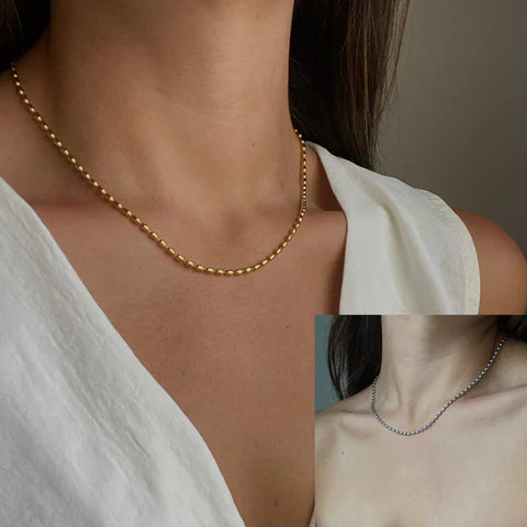 IRASENT - CADENA DE ARROZ PLATEADO ACERO INOXIDABLE