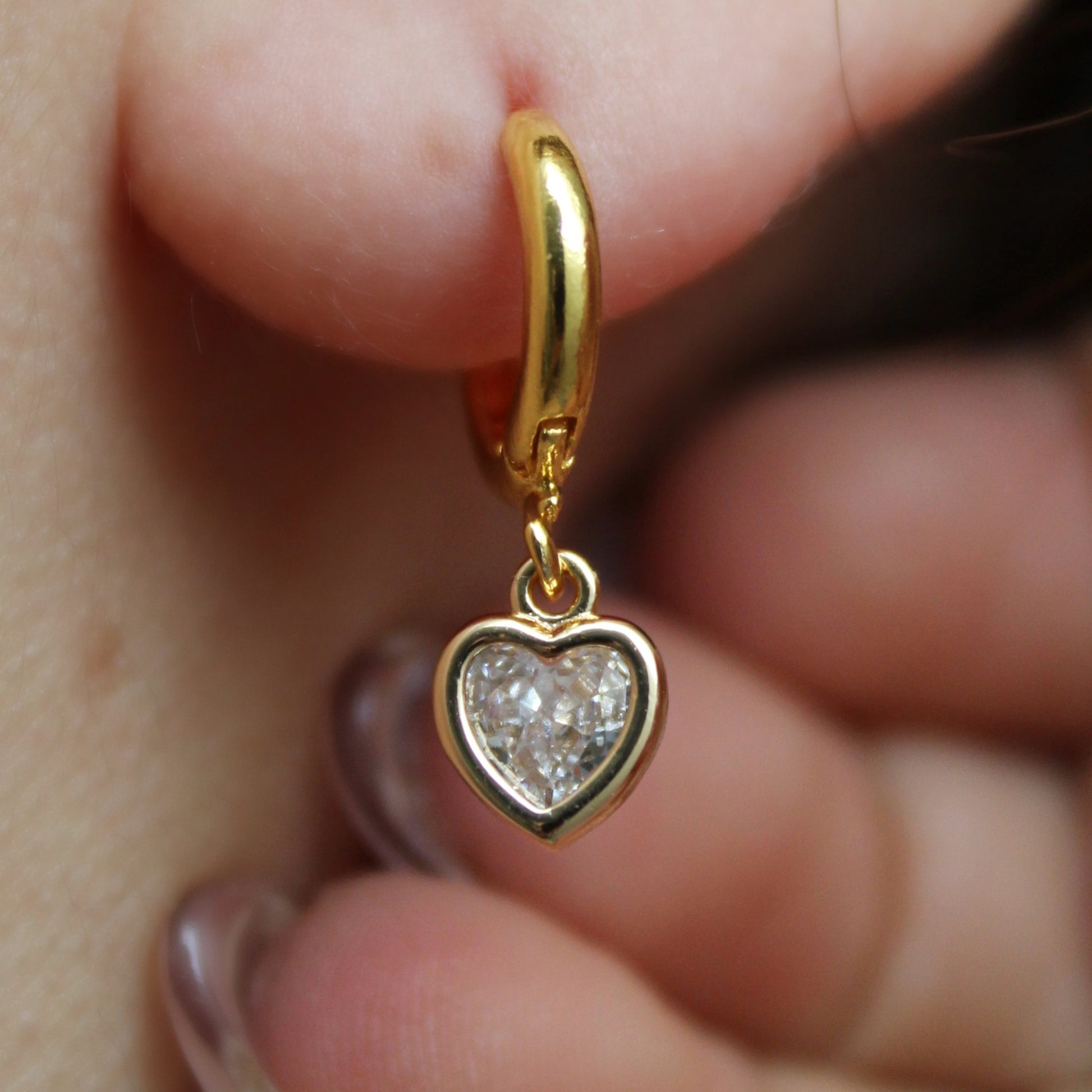 BELLA - ARETES CORAZON ZIRCONIA CHAPA DE ORO