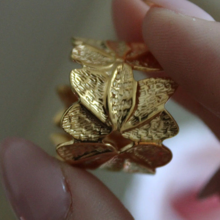 ESTELA - ANILLO GRUESO HOJAS AJUSTABLE ACERO INOXIDABLE